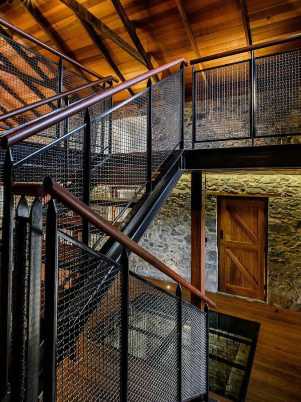 Лофтовые лестницы, выполненные из комбинации металла и дерева, обойдутся заказчику дешевле, чем цельная деревянная конструкция. Плюс неоспоримым преимуществом таких конструкций является простота в уходе за ними, а также удобство проведения ремонтных работ благодаря тому, что изделие это, по сути, конструктор. Ограждение Лофт 11 удачно сочетается с компактной лестницей из деревянных ступеней. В основе лестницы металлоконструкция, к которой надежно крепятся детали ограждения. Ограждение состоит из прямоугольных деталей, внутри которых зафиксирована сетка. Перилла ограждения выполнены из дерева, внешне похожи на трубы небольшого диаметра. Цвет перилл пересекается с цветом ступеней. Благородный черный цвет контрастно выделяет конструкцию на фоне помещения.